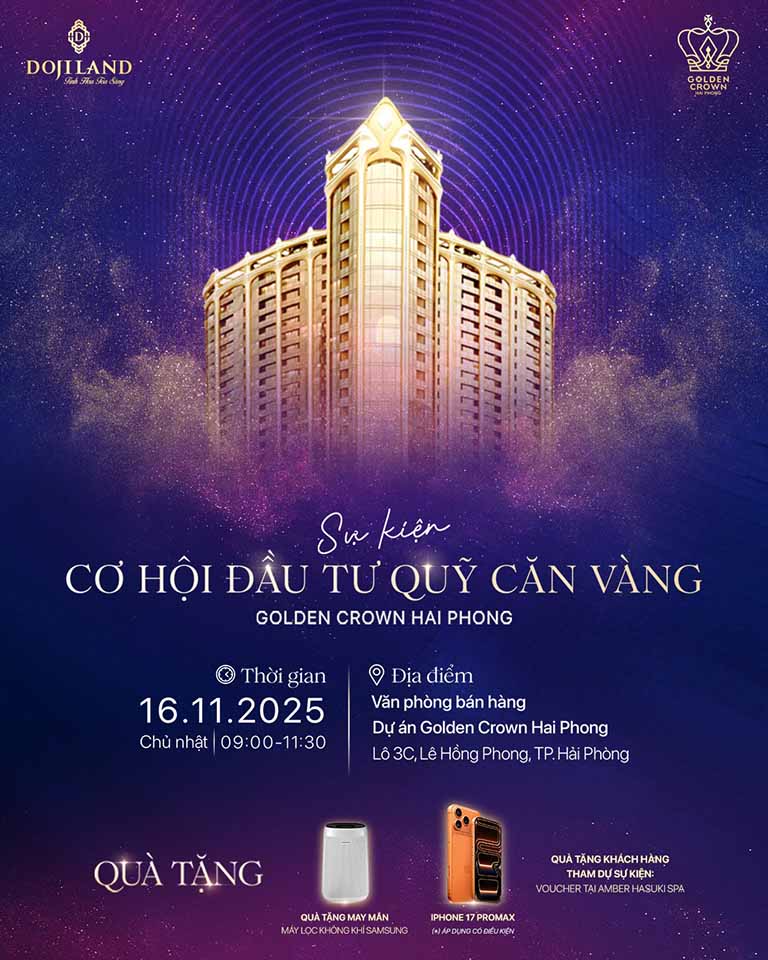 Sáng Chủ nhật, ngày 16/11/2025, tại Văn phòng Bán hàng sang trọng của dự án Golden Crown Hai Phong (Lô 3C, Lê Hồng Phong), đã diễn ra một sự kiện bùng nổ, thu hút sự quan tâm của giới đầu tư tinh hoa: “Cơ hội Đầu tư Quỹ căn Vàng – Golden Crown Hai Phong”. Sự kiện không chỉ là nơi chia sẻ thông tin mà còn là một trải nghiệm trọn vẹn, đánh dấu sự giao thoa hoàn hảo giữa cảm xúc thăng hoa và những quyết định đầu tư chiến lược.