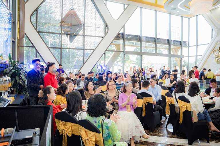 Ngay từ những giây phút đầu tiên, khách mời đã được chào đón trong một không gian kiến trúc đẳng cấp, nơi sự sang trọng được thể hiện tinh tế qua từng chi tiết. Không khí ấm cúng, chuyên nghiệp càng trở nên lôi cuốn hơn nhờ những giai điệu du dương và thanh lịch. Âm nhạc nhẹ nhàng không chỉ giúp thư giãn mà còn tạo nên một tâm thế cởi mở, sẵn sàng tiếp nhận những thông tin giá trị và những cơ hội hiếm có sắp được công bố. Đây chính là khoảnh khắc mở màn đầy cảm hứng, báo hiệu một buổi sáng Chủ nhật ý nghĩa và đáng nhớ.